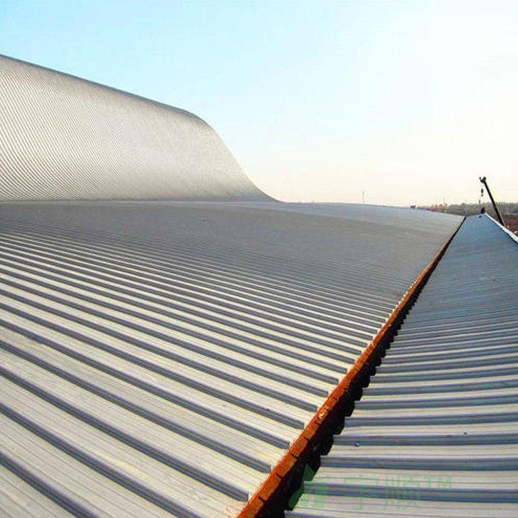 (4)保溫棉施工時的注意事項:①由于屋面底板采用沖孔底板,需在在吸音棉下層鋪設一層無紡布,以防止吸音層的纖維掉落。吸音、保溫層勿需搭接,但必須緊密的連接在一起,中間間隔不得大于5mm;②防水層鋪設在保溫層上面,需要穿過固定座,在安裝之時一定要張緊,不能蹋陷;③為保證施工時玻璃棉板、棉氈鋪設不受天氣的影響,屋面板與保溫、隔聲材料平行施工,施工時應避免對已安裝的固定及屋面底板的破壞并有防突擊強風設施,采用安全網全部覆蓋;④在不具備安裝屋面板的情況下,不能進行吸音、保溫防水層的鋪設;⑤安裝時不得有明火,嚴格控制火源。