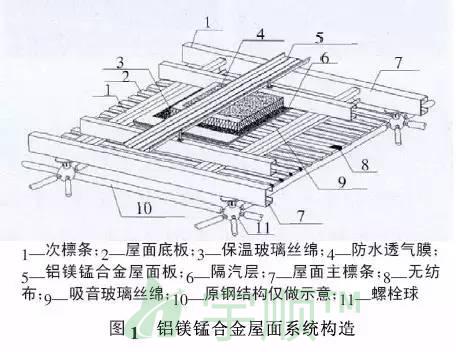 1.1 鋁鎂錳合金屋面系統構造典型的鋁鎂錳合金屋面系統構造,如圖1所示。