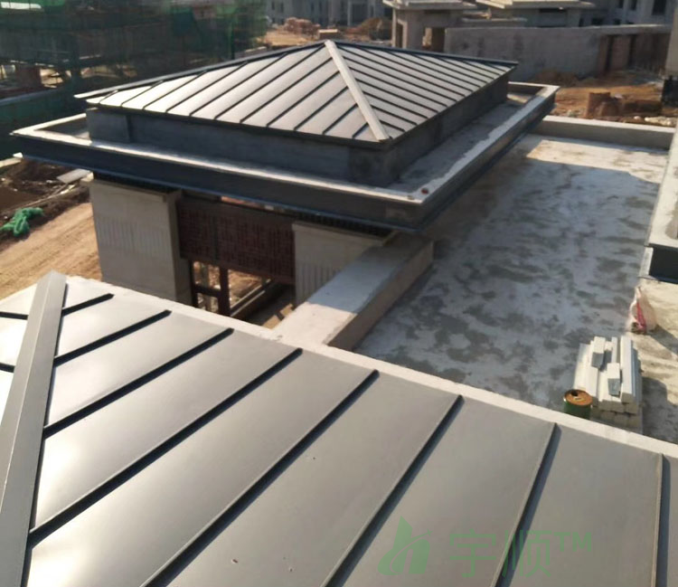 1)所用鋁鎂錳合金材料既有相當的強度,又有很好的柔韌性,特別適合三維曲面等復雜造型的屋面;